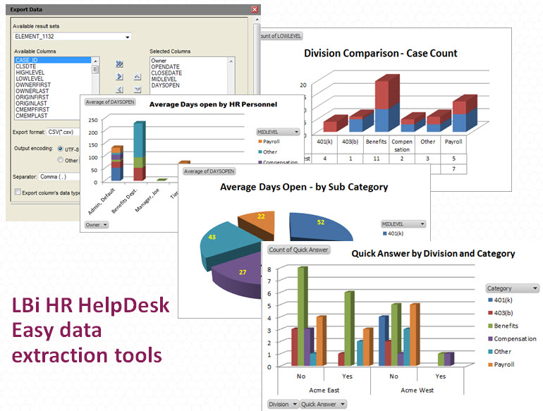 Data export is one of the most heavily used features in LBi HR HelpDesk, bringing easy custom ad-hoc reporting capability to the day-to-day and occasional HR user. Use it and impactful analytics will always be just a few clicks away.